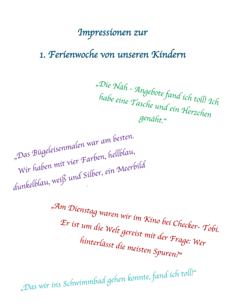 Hier ein kleiner Einblick in die 1. Ferienwoche.